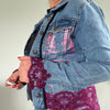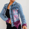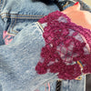 Magenta Foil & Lace Hand-Embellished Jean Jacket | Unique | Size : XS | Missey & Daff